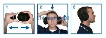 為了取得最佳的防護(hù)效果,應(yīng)用手將頭發(fā)盡可能從耳墊下移出,確保耳罩軟墊與頭部緊密貼合。若使用者佩戴眼鏡,眼鏡腳應(yīng)盡量細(xì)并緊貼頭部。