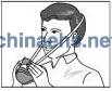 3)將底部頭帶拉到脖子后面,鉤住搭扣。適當拉緊頭帶的兩端調(diào)整松緊度。