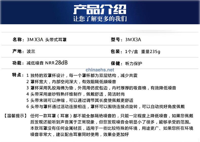 產(chǎn)品名稱:3M PELTOR X3A隔音耳罩 隔音耳機(jī)防噪音睡眠用工業(yè)學(xué)習(xí)射擊F1耳罩