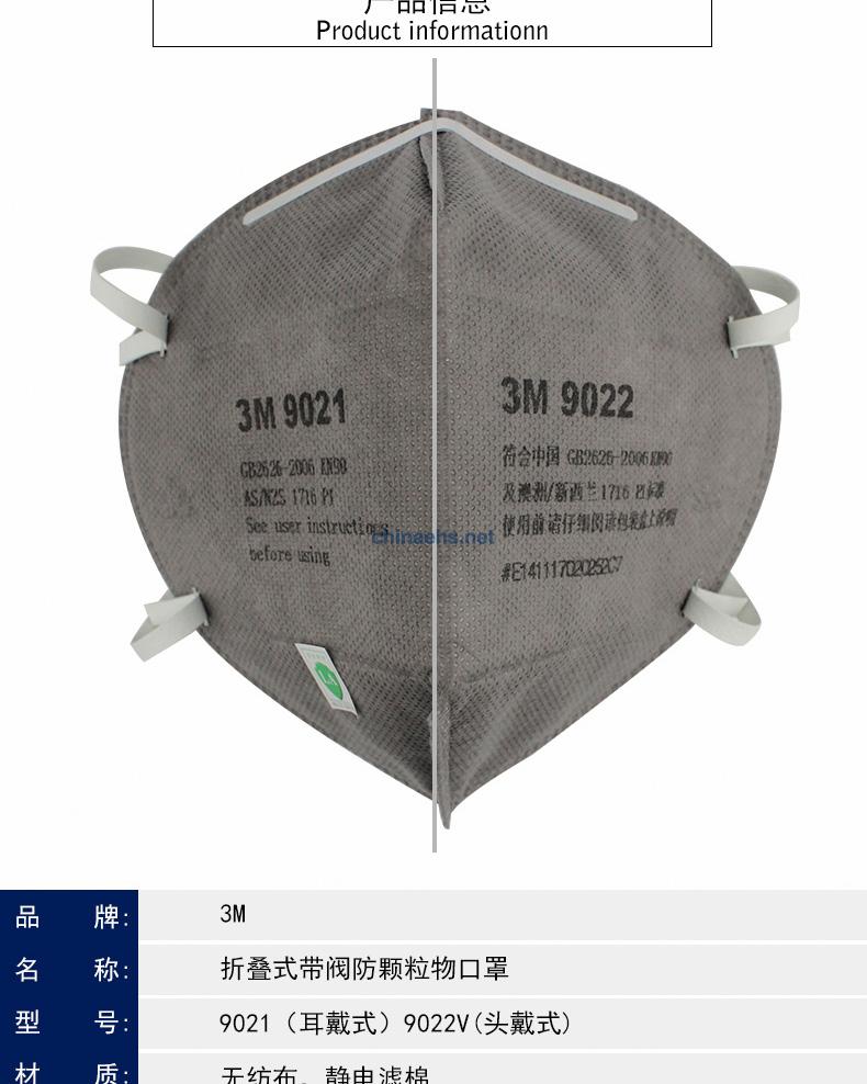 產(chǎn)品名稱:3M 9021/9022 折疊式顆粒物防護口罩