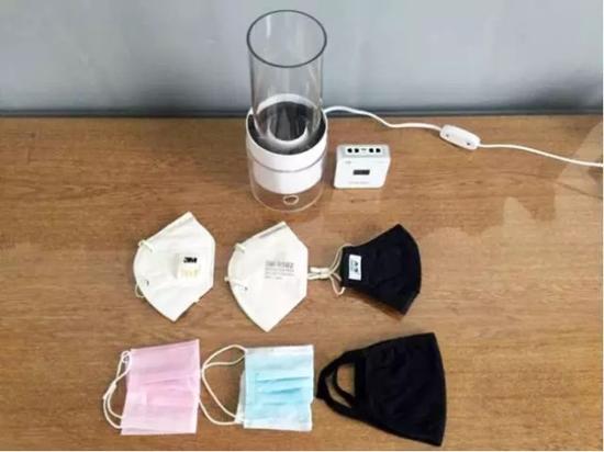 PM2.5檢測(cè)儀1臺(tái)、口罩過濾效率檢測(cè)裝置1臺(tái)、防霾口罩6款