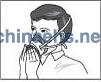 2)拉住搭扣拉底部的頭帶將面罩罩住口鼻固定于面部。