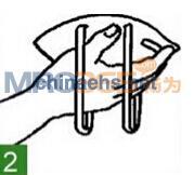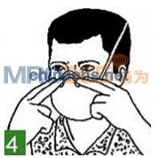 4. 用雙手食指,從鼻夾中部開始,向兩側(cè)一邊移動(dòng)一邊向下按壓鼻夾,塑造鼻梁形狀,