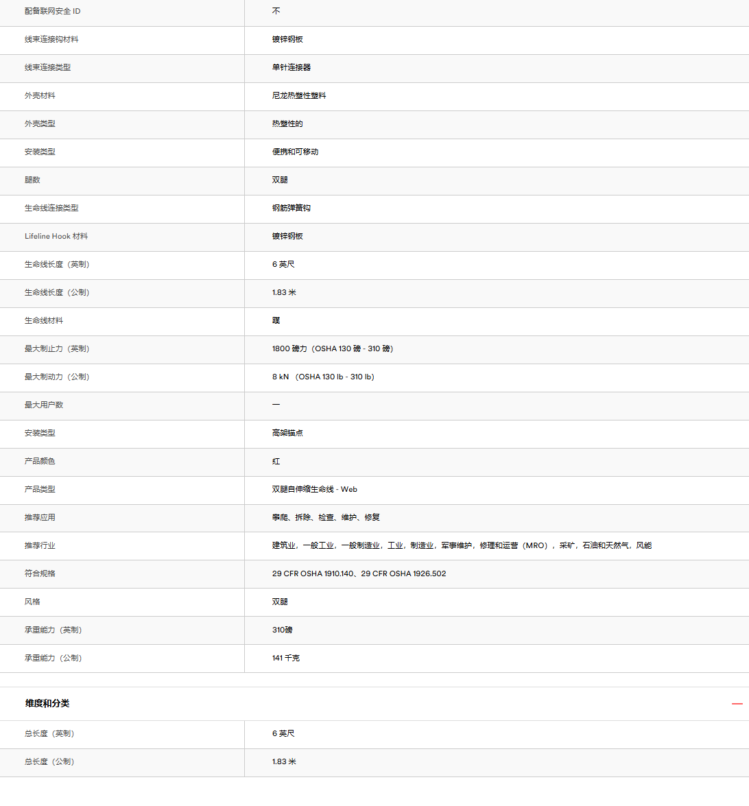 3M(凱比特)70804105008 3100512 Rebel織帶自鎖速差器,1.8米